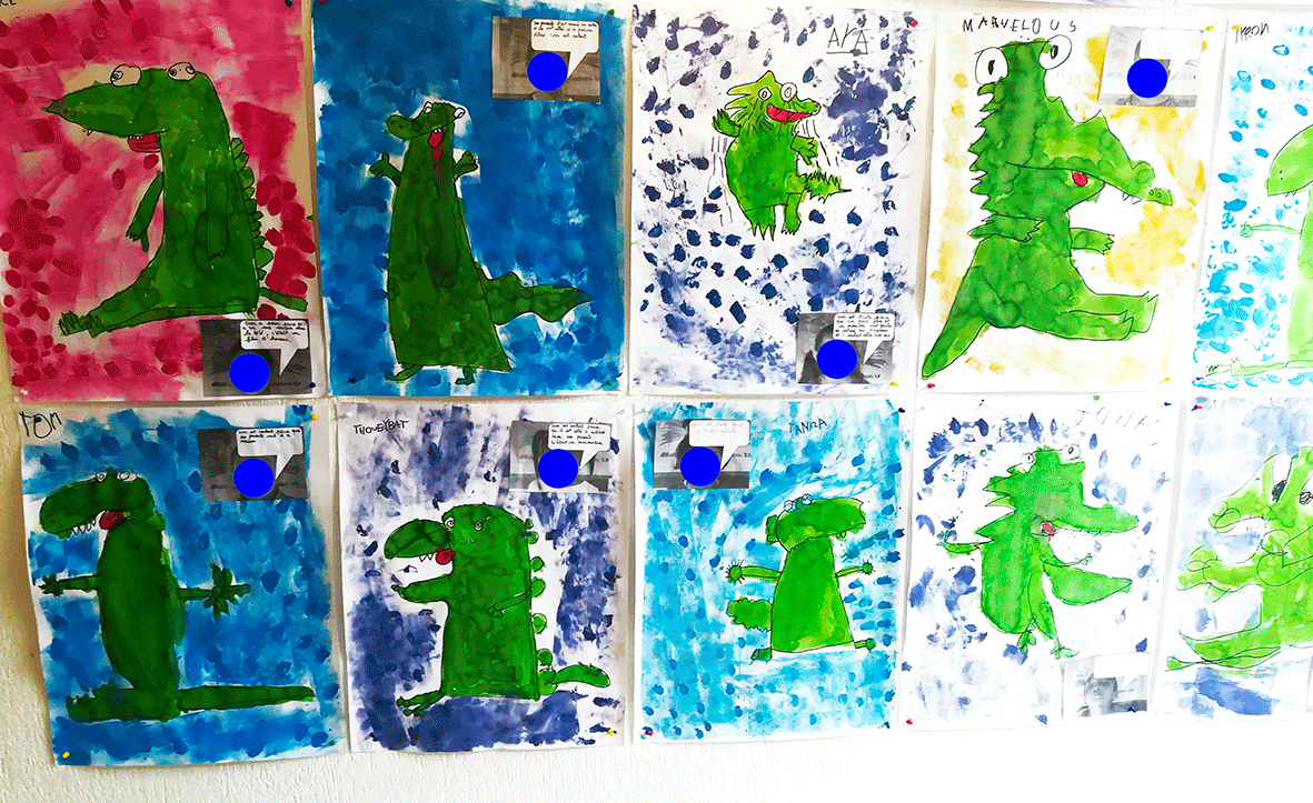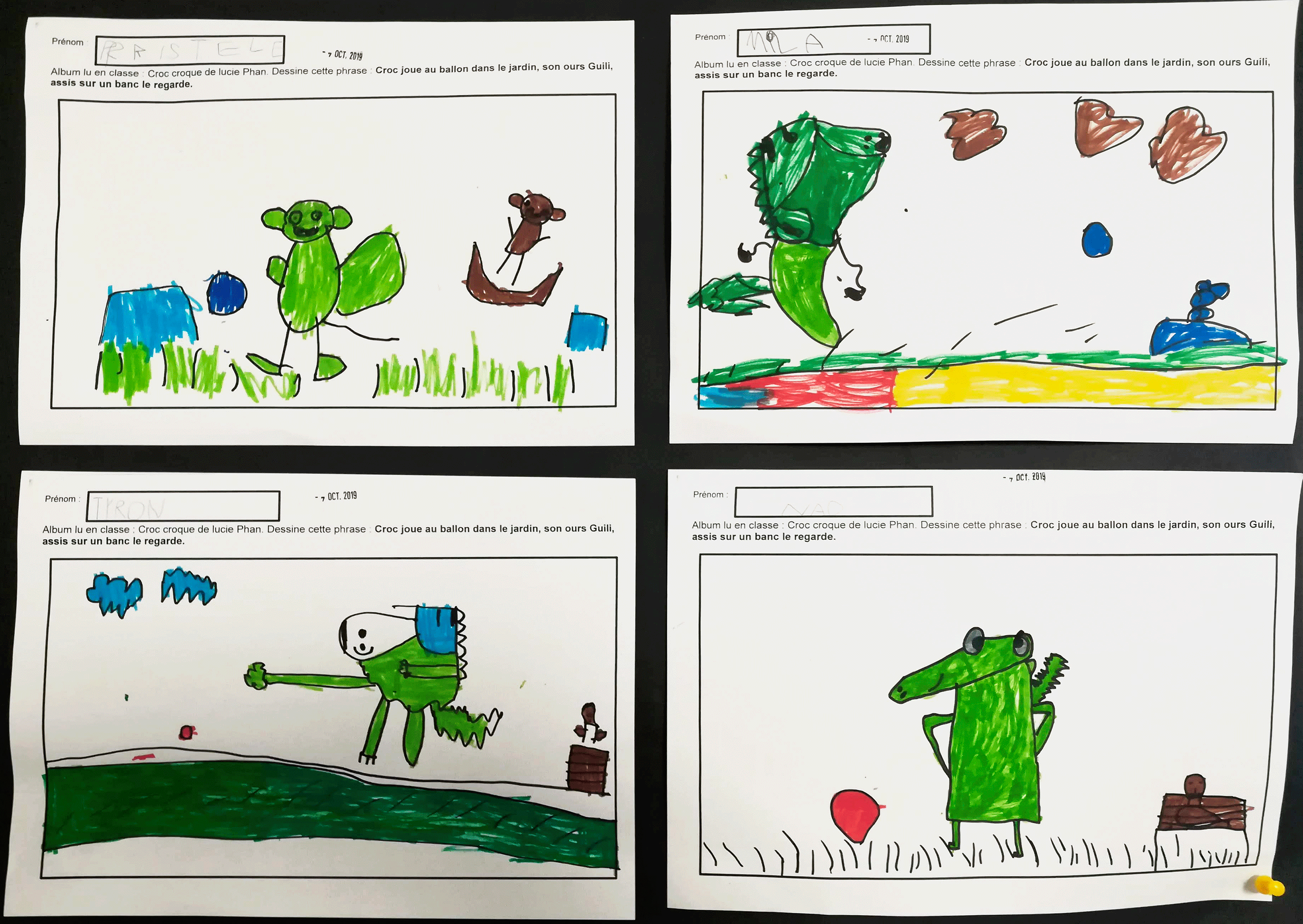 Travaux réalisés par les élèves de GS CP de l'école d'Essay, d'après le livre Croc vacances École des Loisirs.
